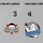 Zu Beginn der Begegnung merkte man die Nervosität auf beiden Seiten: Viele Fehlpässe im Aufbau und kaum Chancen prägten die Anfangsphase. Einen dieser Fehler im Aufbau konnten dann jedoch die Gäste zur 0:1 Führung ausnutzen (8.). Doch die Nerds zeigten sich davon unbeeindruckt und glichen wenige Augenblicke später aus (9.). Torschütze war hier Dotzauer in seinem ersten Spiel für die Nerds. In der Folge stabilisierten sich beide Mannschaften ein wenig und die Partie gewann von Minute zu Minute an Attraktivität. Ein weiterer Treffer konnte im 1. Drittel aber keine Mannschaft mehr verbuchen. Zu Beginn des 2. Drittel erspielten sich die Nerds dann ein kleines Übergewicht, scheiterten aber wiederholt am starken Goalie der Isarrider bzw. an der fehlenden Schusseffizienz. In Minute 41 musste dann Uhlar auf der Strafbank platznehmen nachdem er etwas übermotiviert in einen Zweikampf ging. In dem fälligen Powerplay der Gäste dauerte es nur wenige Sekunden bis nach einem unübersichtlichem Gestochere vor dem Tor ein Stürmer der Isarriders ungestört zum 1:2 einschieben konnte (41.). Doch die Lohhofer zeigten erneut Moral und forcierten ihre Offensivbemühungen. Einen Angriff konnten die Gäste nur durch ein Foul stoppen. Im folgenden Powerplay spielte man die Überzahl dann gekonnt aus und kreierte zahlreiche Chancen. Eine dieser Chancen vollendete Poschmann souverän, nachdem der Torhüter der Isarriders einen wuchtigen Schuss von Koffer nur abprallen lassen konnte (45.). Nur fünf Minuten später war es dann erneut Poschmann der eiskalt vor dem Tor zur erstmaligen Führung der Heimmannschaft abstaubte (50.). In dieser dominanten Phase der Nerds zog man dann jedoch erneut eine recht unnötige Strafe und musste wiederum 2 Minuten in Unterzahl spielen. Wie beim ersten Unterzahl war auch diesmal das Scheibenglück nicht auf Seite der Nerds: Ein zunächst recht ungefährlich anmutender Schuss landete durch 2-maliges abfälschen der Lohhofer Hintermannschaft direkt auf der Kelle des wartenden Stürmers im Slot der nur noch einschieben musste (52.). In den letzten Minuten versuchten die Lohhofer dann nochmal alles um die erneute Führung zu erzielen. Dabei vergas man aber allzu oft die eigene Defensive. Dies bestraften die Gäste eiskalt: Einen Konter 3 Minuten vor Spielende spielten die Isarriders gekonnt aus und erzielten das 3:4 (57.). In den letzten Minuten zog man dann Goalie Reis zugunsten eines 6. Feldspielers. Trotz guter Chancen wollte der Ausgleich allerdings nicht mehr fallen. So musst man sich schlussendlich aufgrund der schlechten Chancenverwertung nicht ganz unverdient geschlagen geben. Die ersten Punkte in der MEL 3 verbuchten somit die Isarriders auf ihrem Konto. Aber schon in wenigen Wochen haben die Nerds die Chance auf Wiedergutmachung. Bereits am 29.11. steht das Rückspiel im Eis- und Funsportzentrum Ost an. Und auch im MEL-Pokal Achtelfinale trifft man aufeinander. Ein Termin hierfür muss noch gefunden werden. Bis dahin werden die Nerds natürlich versuchen im Training die Weichen für die Revanche zu stellen.