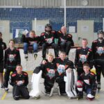 Doch damit nicht genug: Direkt im Anschluss traf auch die U19 Mannschaft der Hockey Nerds auf den Gegner aus Augsburg. Die Lohhofer U19 befindet sich derzeit in ihrer zweiten Spielzeit und muss dabei regelmäßig gegen immens starke Gegner antreten, bei denen nicht selten einige Spieler bereits hochklassige Erfahrung im Seniorenbereich gesammelt haben – bis hin zu Bundesligaspielern. Hinzukommt, dass die Hockey Nerds regelmäßig auf mehrere Spieler der Altersklasse U16 zurückgreifen müssen. Entsprechend mussten sich die Lohhofer trotz großem Einsatz bislang stets geschlagen geben. Doch das sollte sich ändern. Dabei sah es zunächst danach aus, als sollte das Spiel den gewohnten Verlauf nehmen: Zwar hielten die Lohhofer gut mit, doch Anfang des letzten Drittels konnten die deutlich favorisierten Augsburger mit 4:2 davonziehen. Doch die Nerds zeigten großen Kampfgeist und ließen sich davon nicht beeindrucken: Nur acht Sekunden später gelang Nerds-Kapitän Dylan Bairstow der Anschlusstreffer. Und auch nach zwei weiteren Gegentreffern kämpften die Lohhofer weiter. Mit Erfolg: Erneut dauerte es nur wenige Sekunden, bis Kapitän Dylan Bairstow seine Mannschaft mit zwei Treffern wieder herangebracht hatte. Sechs Minuten vor Schluss war es dann U16-Angreifer Matheo Lehner der nach einer schönen Kombination den Ausgleich herstellen konnte, sodass die Entscheidung letztlich im Penaltyschießen getroffen werden musste. Und dort hatten die Hockey Nerds endlich das bessere Ende auf ihrer Seite: Während Dylan Bairstow und Elliot Blowing erfolgreich trafen, war es Goalie Luis Deusel der mit zwei gehaltenen Penaltys den historischen ersten Sieg einer Lohhofer U19 festhalten konnte. (Torschützen: Dylan Bairstow (4 Treffer), Elliot Blowing (1 Treffer) und Matheo Lehner (1 Treffer).